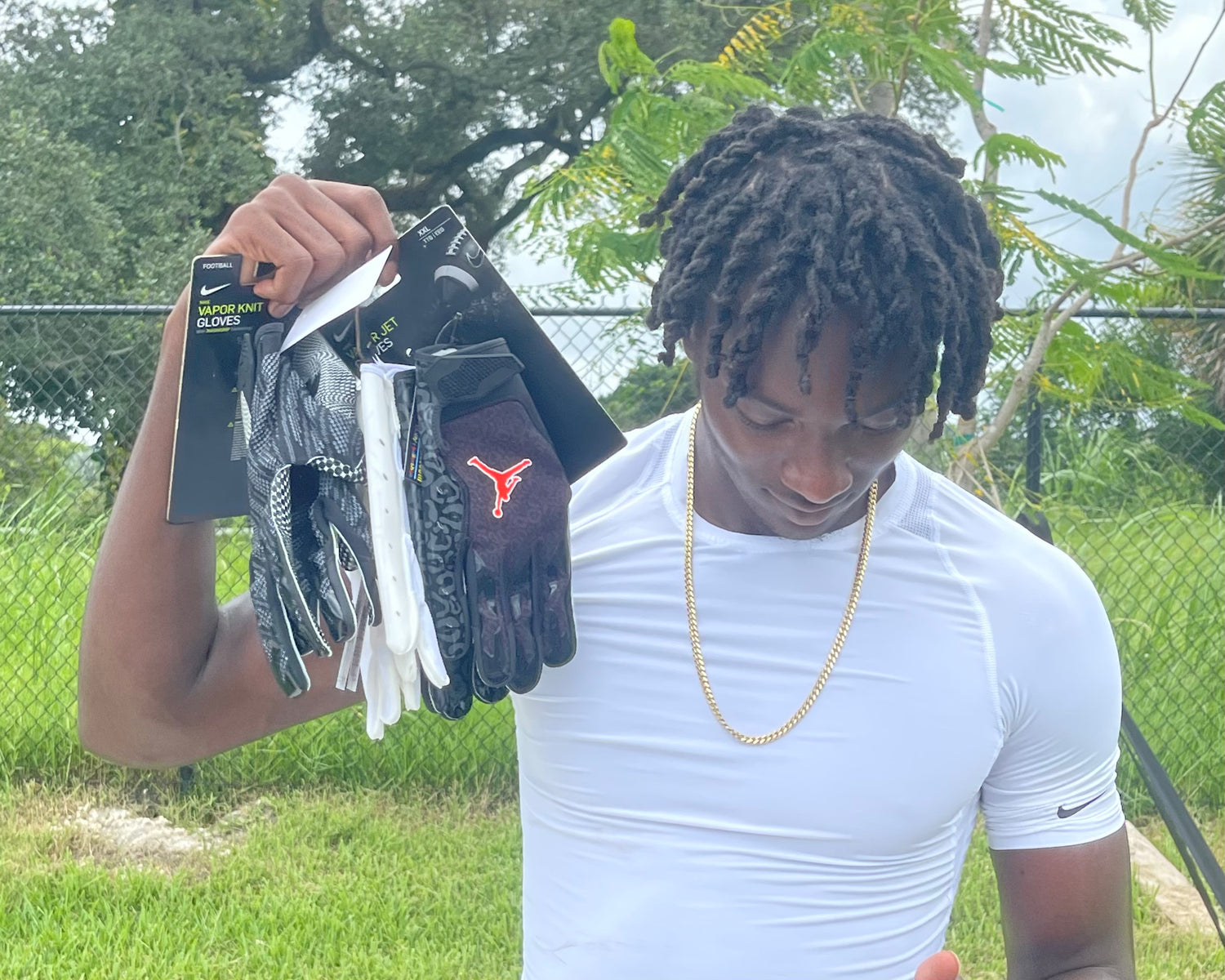 Jamari "TrackStar" Howard ready to rock the Jordan Vapor Jet 6.0 "Jarvis Landry" PE Football Gloves, Nike Vapor Jet 7.0 Football Gloves, and the Nike Vapor Knit 3.0 Football Gloves during the season!